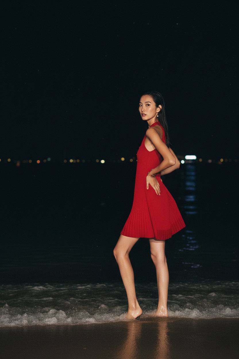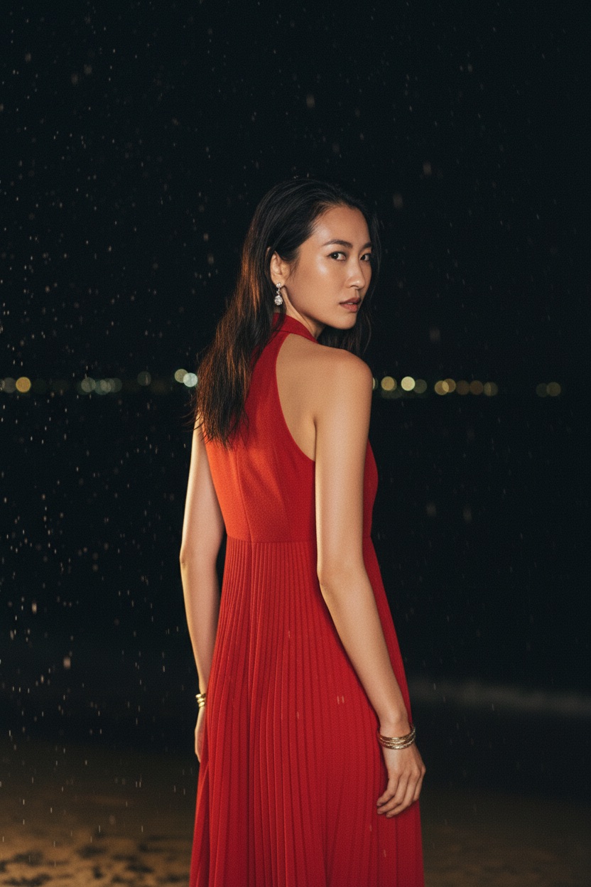 Vintage Gianni Versace wool dress, 1990s. Red with gold accents, pleated skirt, mid-length silhouette. Italian size 42. Classic ’90s elegance, perfect for collectors and vintage lovers