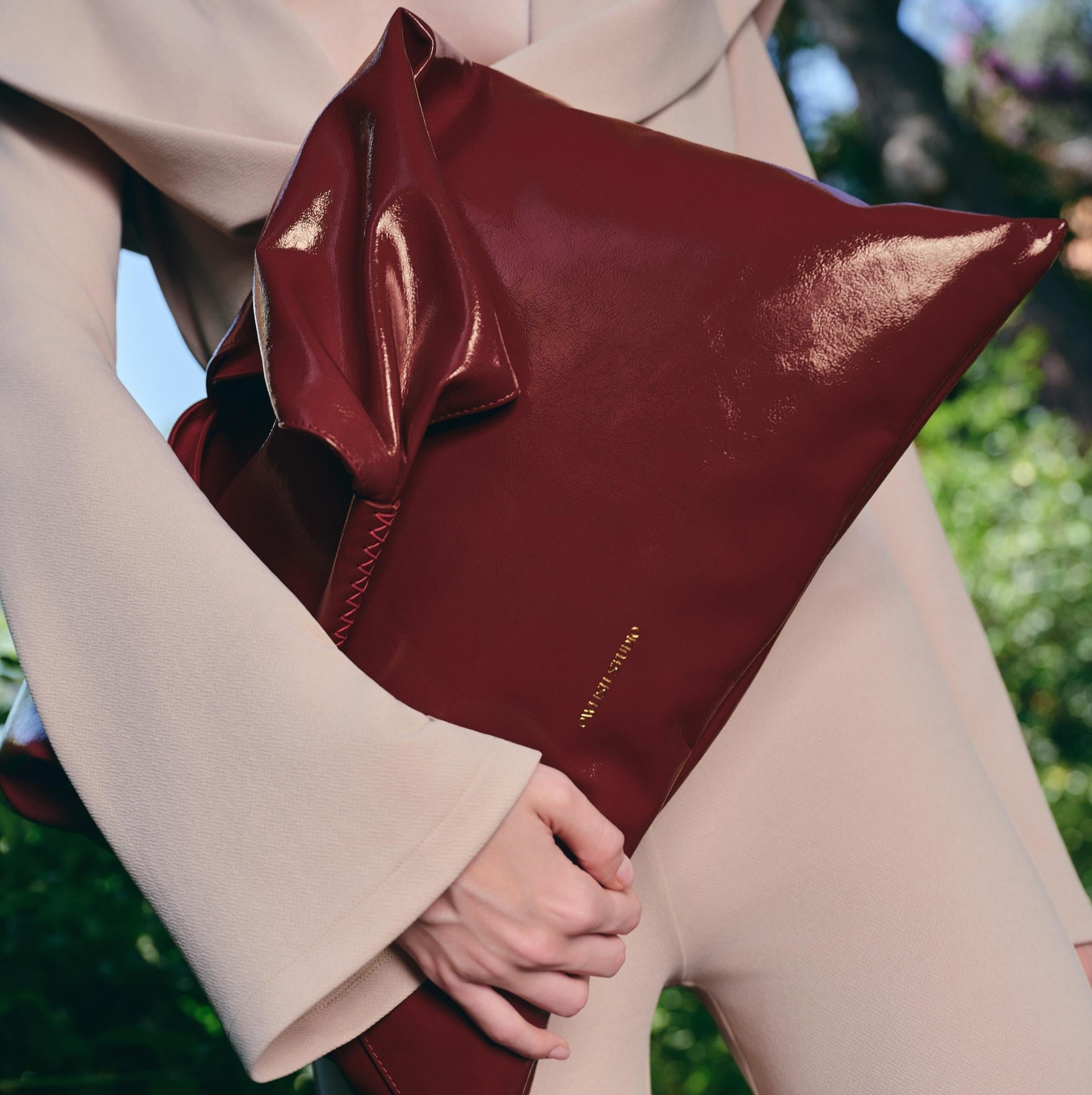 Crafted from plant-based vegan leather, this bag boasts a spacious interior. It is designed to carry daily essentials, including a laptop, and features a gracefully draped silhouette. This minimalist and timeless design transitions seamlessly from the office to evening events.